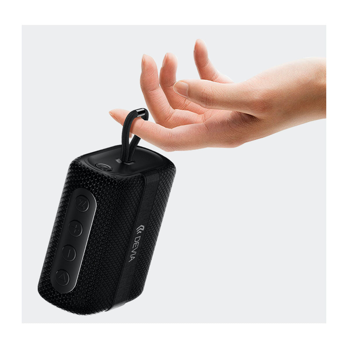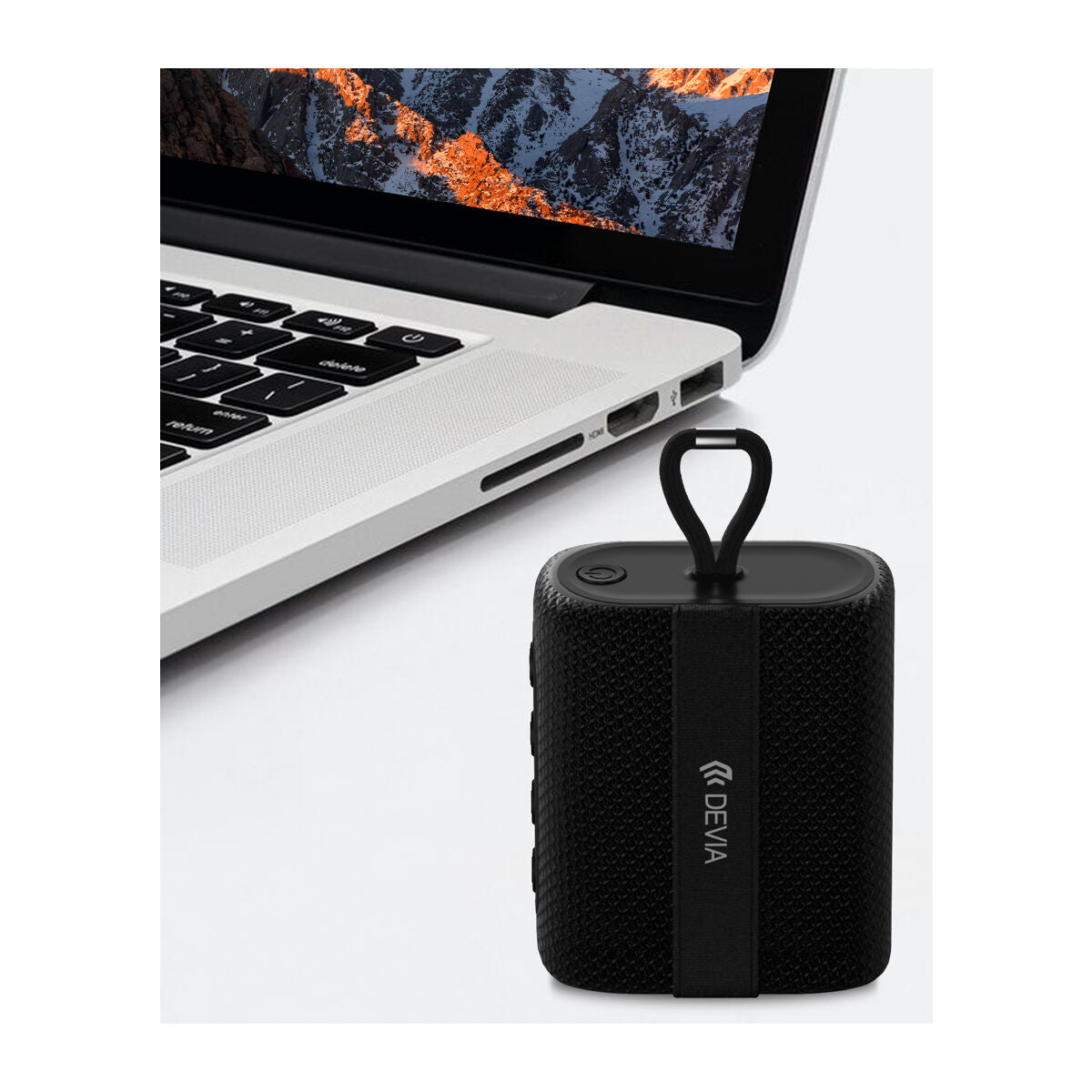 Disfruta de la Bocina Lanyard Speak de Devia en su elegante color negro y su increíble diseño práctico, el cual te permite llevarla contigo de manera fácil.