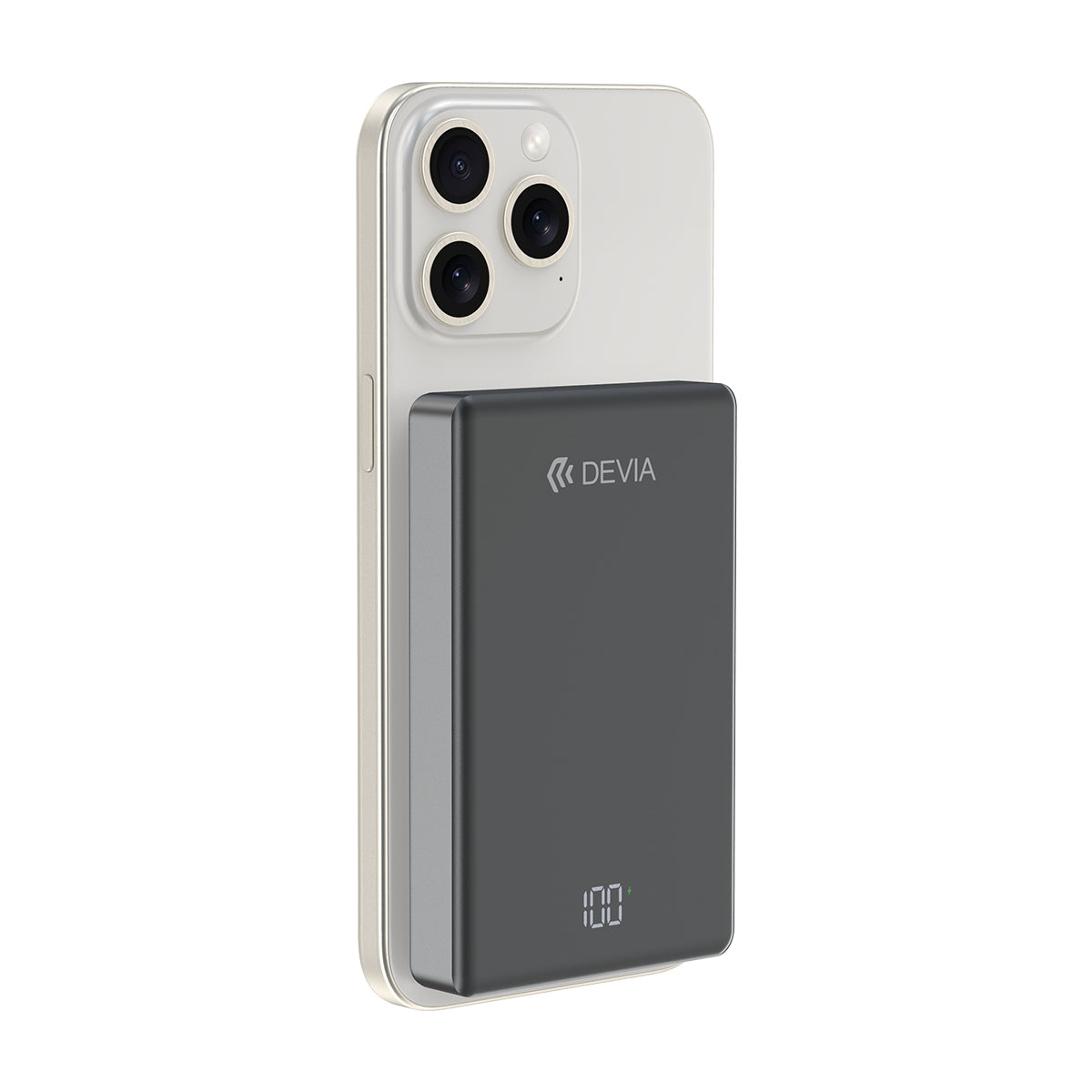 Esta batería portátil incluye un display digital que muestra el porcentaje exacto de carga restante, brindándote control total sobre la energía disponible. Con puerto tipo C de entrada y salida, permite una carga rápida y eficiente en ambos sentidos. Su diseño magnético facilita el transporte y el uso, y su estilo moderno se adapta a cualquier ocasión.