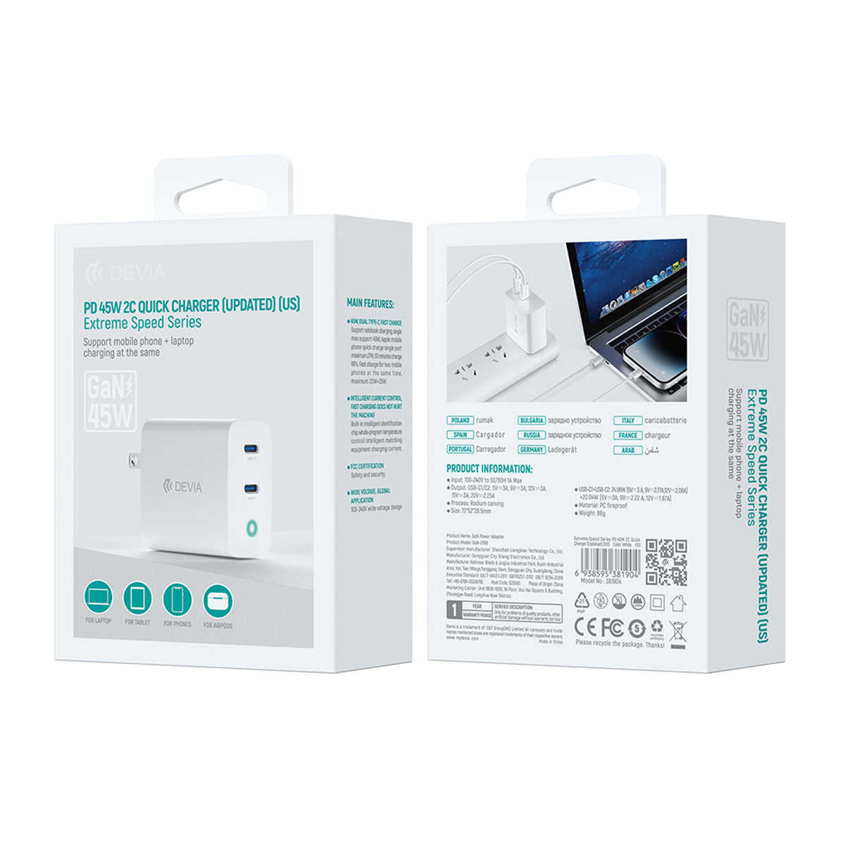 Cubo de carga Devia rapida de 45W