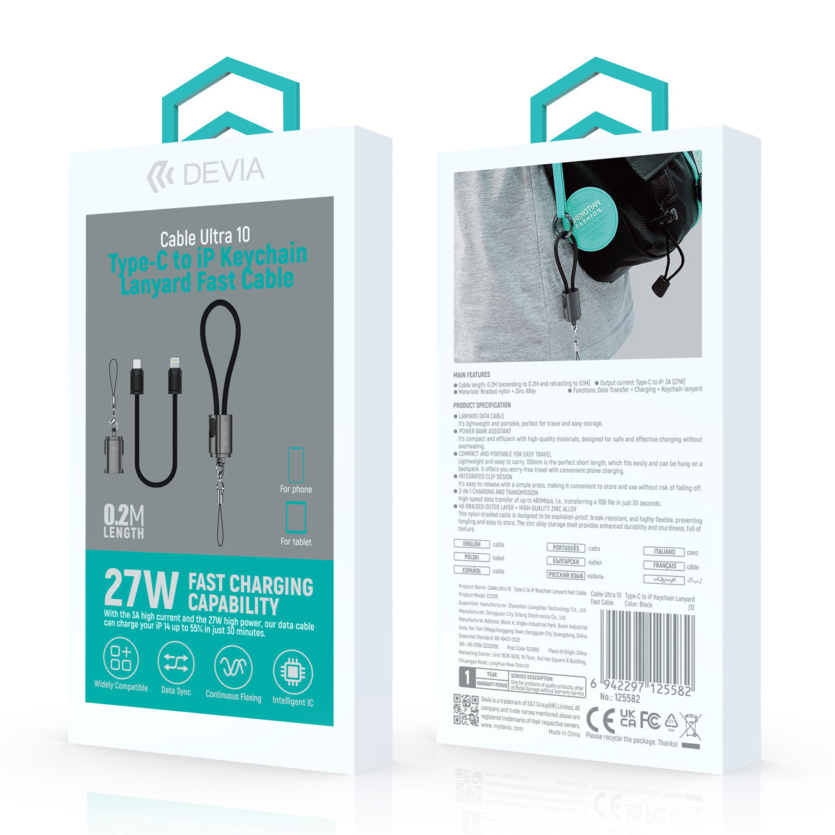 llavero de cable Ultra 10 Type-C a Lightning con llavero retráctil de 0.2 m. Diseñado para cargar y transferir datos de forma rápida y segura, con potencia de hasta 27W y corriente de 3A. Su diseño compacto lo hace ideal para llevarlo en mochilas o como llavero. Compatible con dispositivos Apple con conector Lightning. Fabricado con materiales duraderos y chip inteligente que protege contra sobrecargas y sobrecalentamientos. Práctico, resistente y perfecto para el día a día.